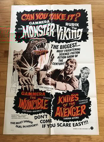 1966 GAMMERA THE INVINCIBLE/KNIVES OF THE AVENGER Original U.S. Double Bill One Sheet Movie Poster