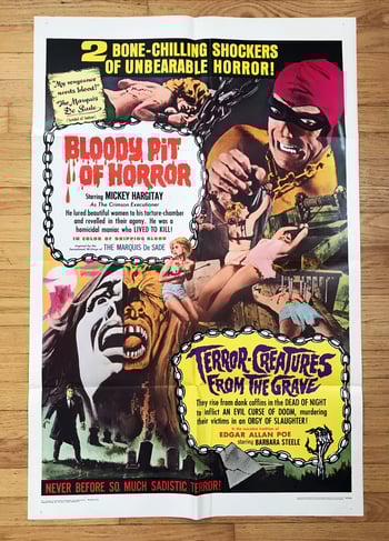 1967 BLOODY PIT OF HORROR/TERROR CREATURES FROM THE GRAVE Original U.S. Double-Bill One Sheet Poster