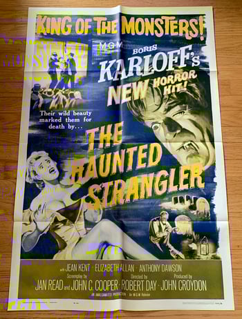 1958 THE HAUNTED STRANGLER Original 1962 Re Release U.S. One Sheet Movie Poster