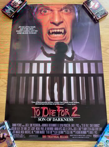 1991 TO DIE FOR 2 SON OF DARKNESS Original Vidmark Entertainment Promotional Video Movie Poster