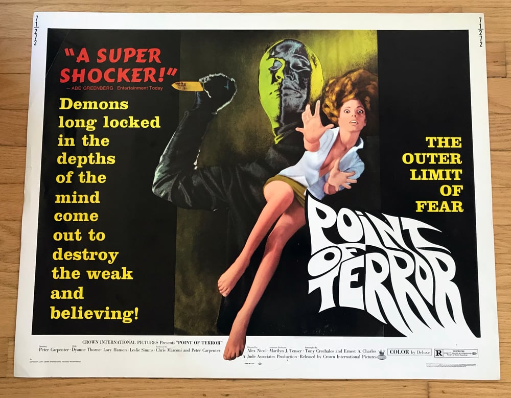 1971 POINT OF TERROR Original U.S. Half Sheet Movie Poster- EX undisplayed condition- measures 22 x 28" - rolled.