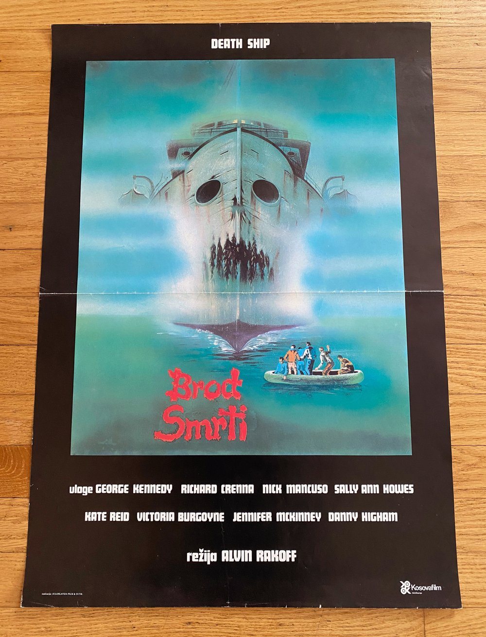 1980 DEATH SHIP Original Yugoslavian Movie Poster- VG+ condition- minor edge wear on bottom- measures 19" x 27 1/4" - folded as originally issued.