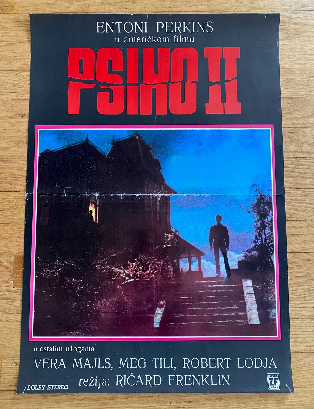 1983 PSYCHO II Original Yugoslavian Movie Poster- VG condition- heavy fold wear/handling wear- measures 18 1/2" x 26 3/4" - folded as originally issued.