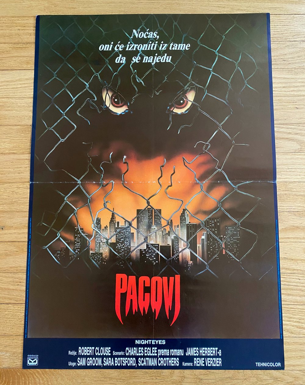 1985 DEADLY EYES aka NIGHT EYES Original Yugoslavian Movie Poster- VF undisplayed condition- measures 19" x 27 1/4" - folded as originally issued.
