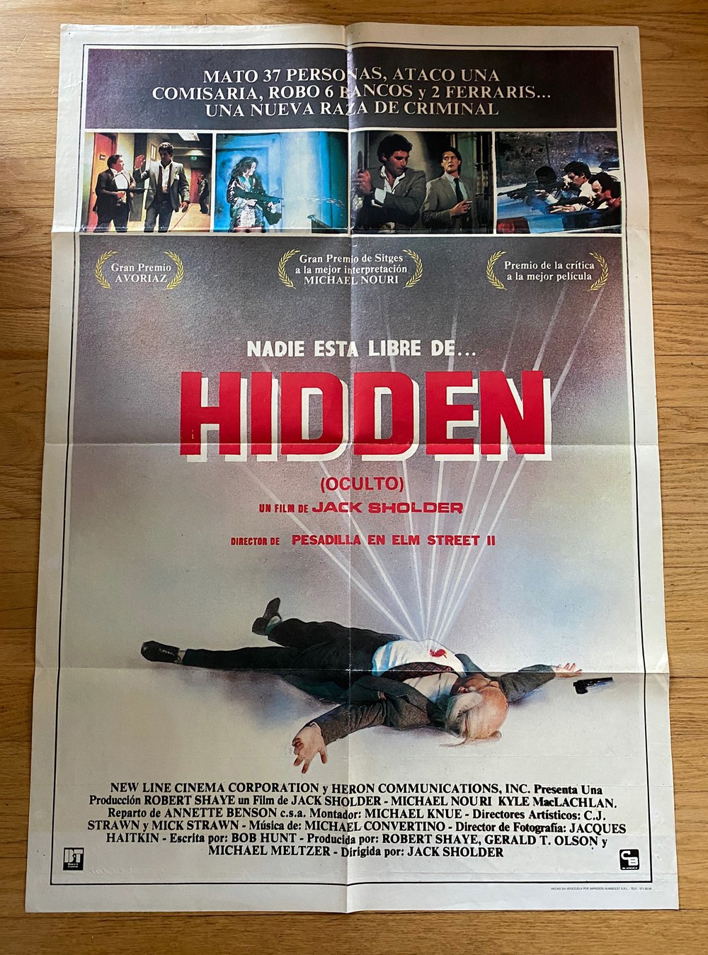 1988 THE HIDDEN Original South American One Sheet Movie Poster- EX undisplayed condition- measures 27 x 40" -folded as originally issued.