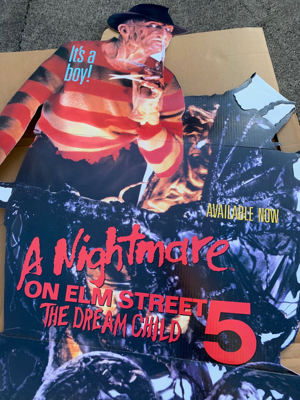 1989 A NIGHTMARE ON ELM STREET 5: THE DREAM CHILD Original Video Store Promo Standee- MINT undisplayed condition- comes complete with all of the promotional materials and original shipping box! Stands about 5 feet tall!