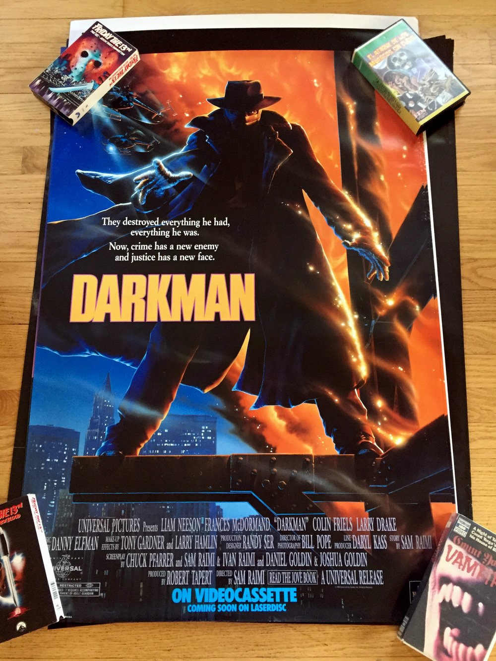 1990 DARKMAN Original Promotional Video Movie Poster- VG+ undisplayed condition- measures 27 x 40" - rolled.
