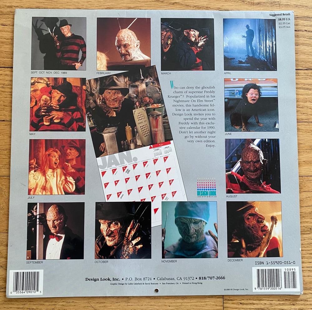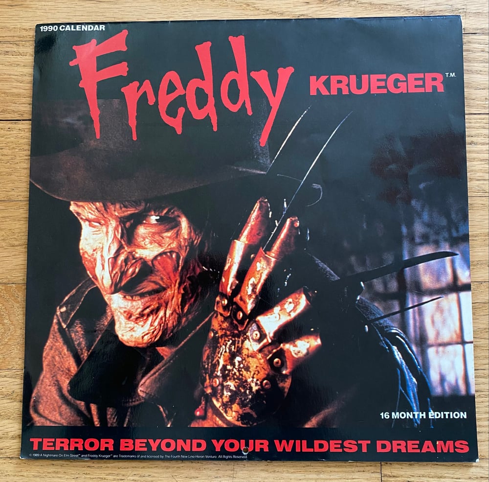 1990 Freddy Krueger Calendar by Design Look, Inc.- VF condition measures 12 x 12" Vintage HORROR goodness!